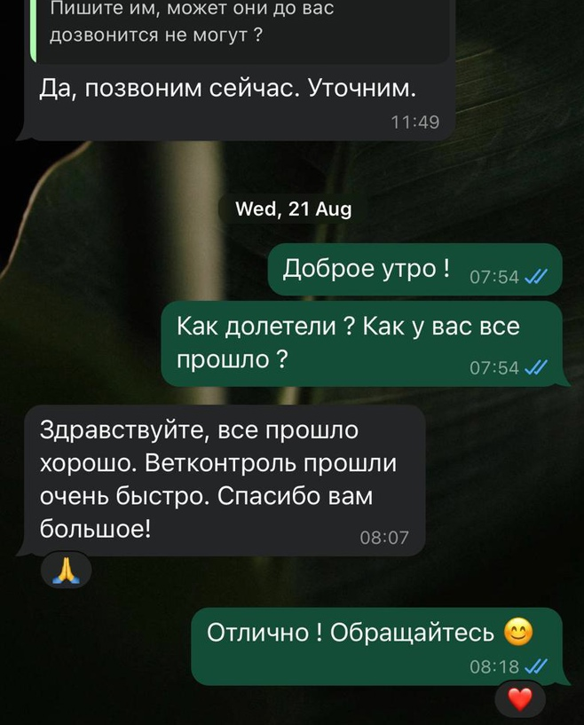 We are one of the few who have a license from the Dubai government, which guarantees compliance with all international standards for the transportation of animals. Travel with us - safe and secure. License for transport animals №816960.